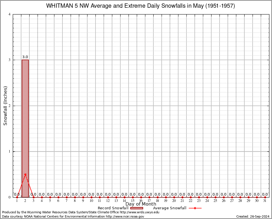 May Average and Extreme Daily Snowfall AMounts (1951-1957)