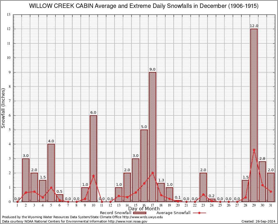 December Average and Extreme Daily Snowfall AMounts (1906-1915)