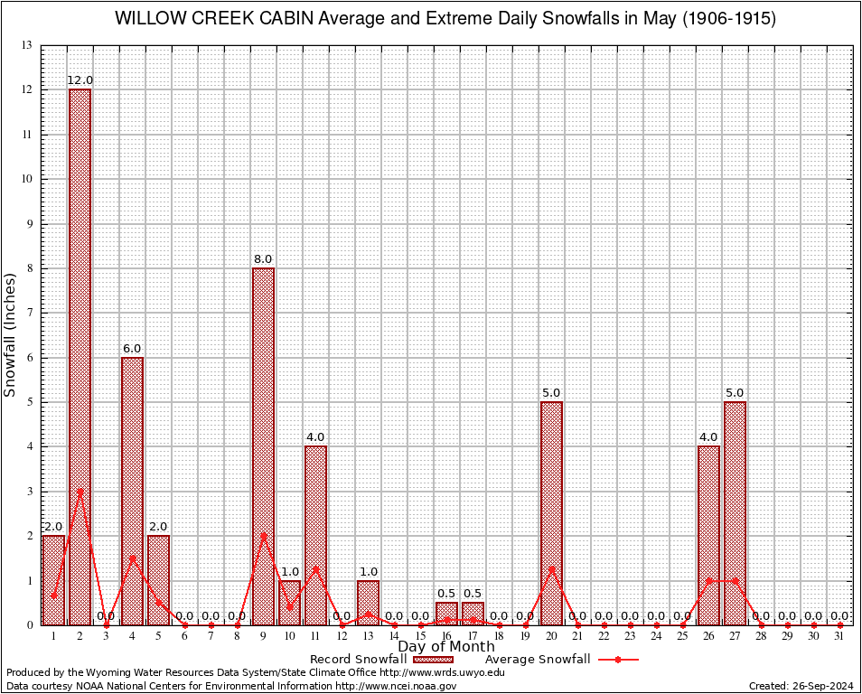 May Average and Extreme Daily Snowfall AMounts (1906-1915)
