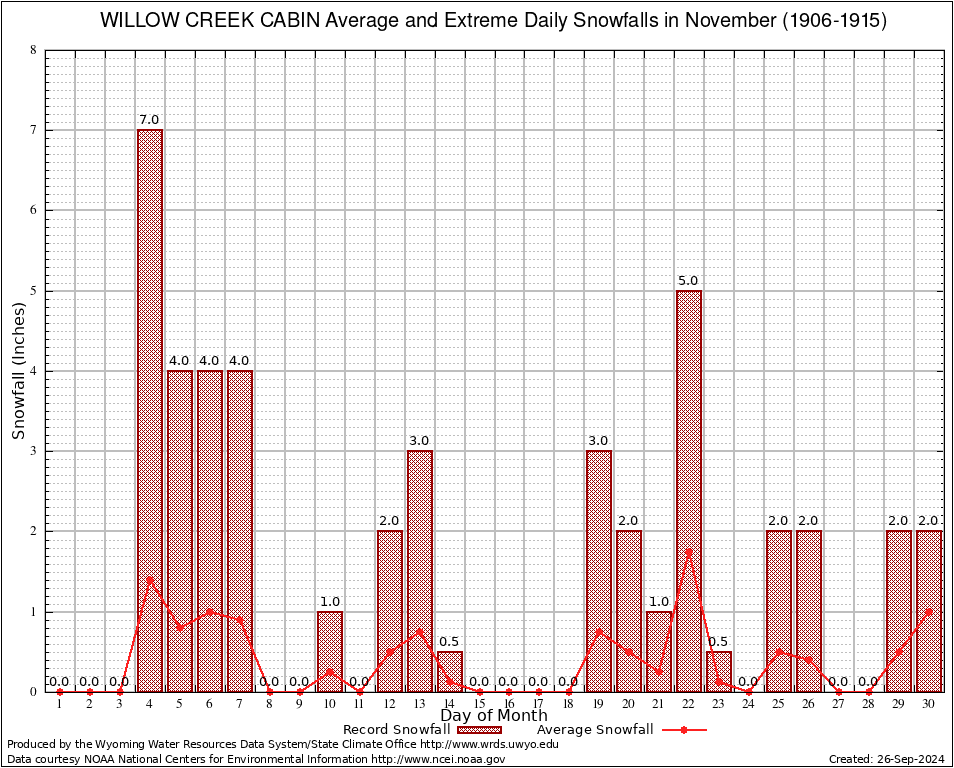 November Average and Extreme Daily Snowfall AMounts (1906-1915)