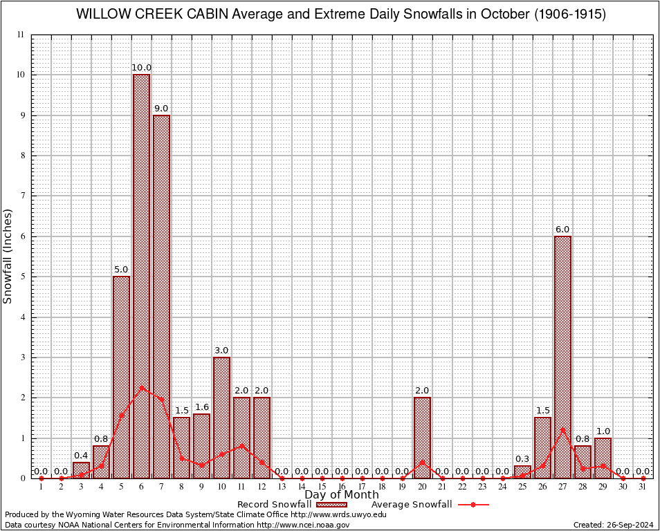 October Average and Extreme Daily Snowfall AMounts (1906-1915)