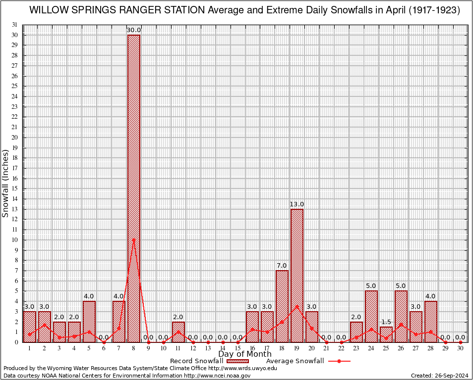 April Average and Extreme Daily Snowfall AMounts (1917-1923)