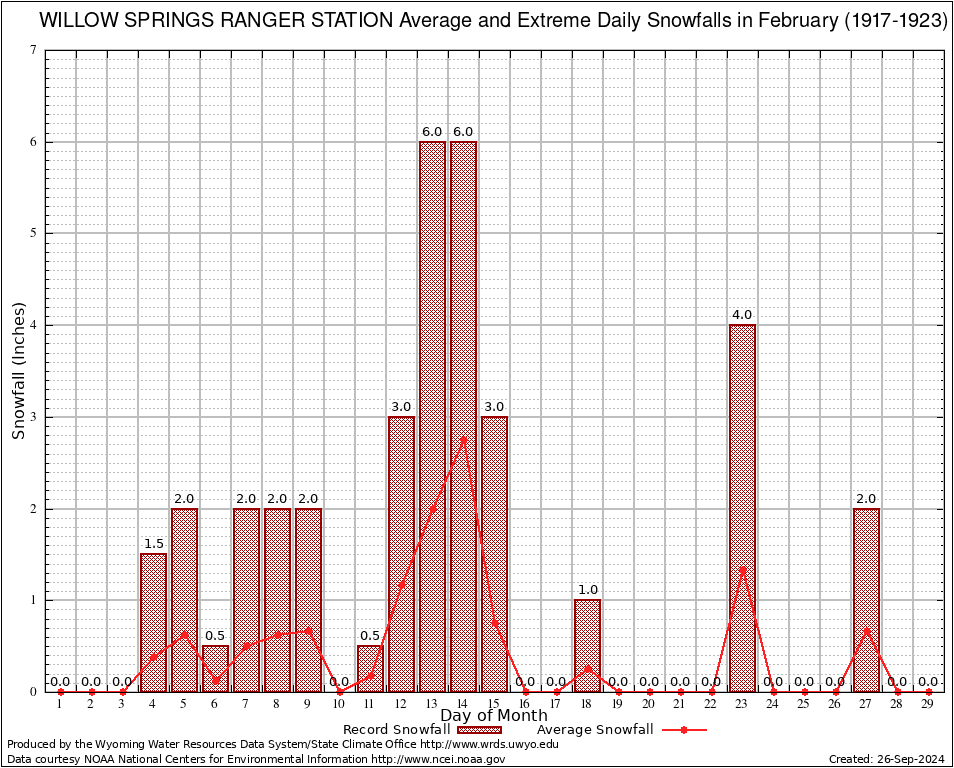 February Average and Extreme Daily Snowfall AMounts (1917-1923)