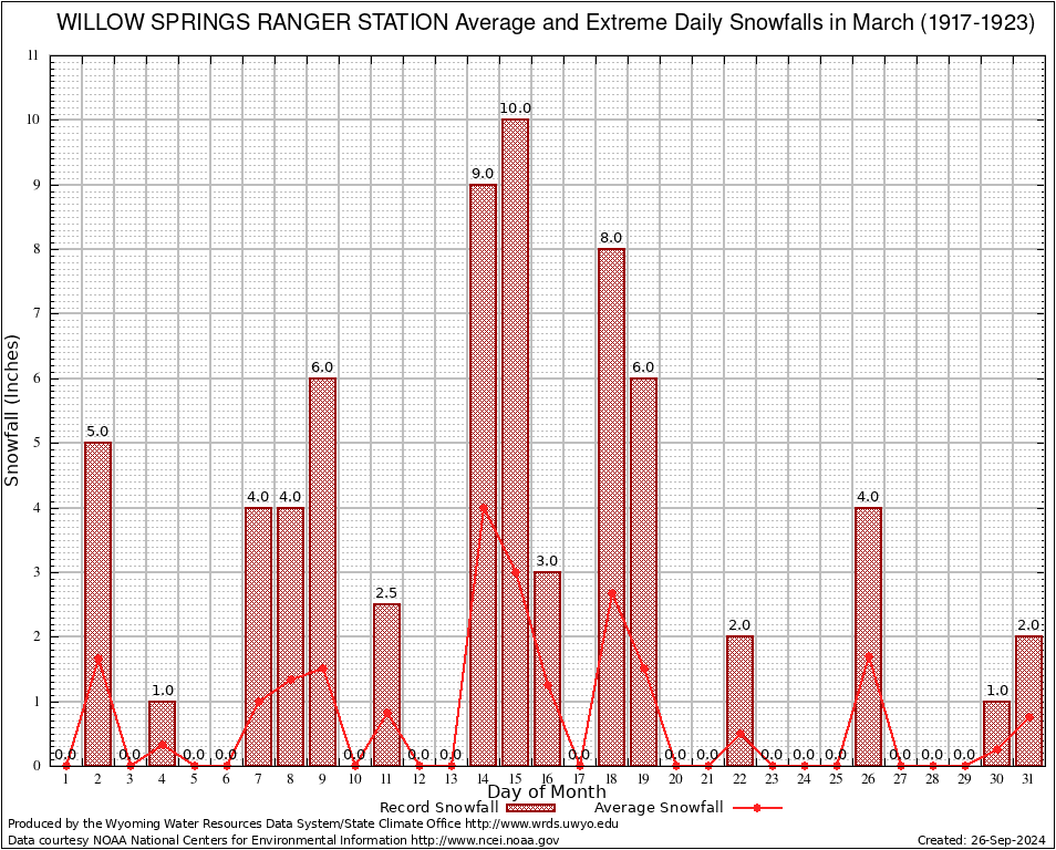 March Average and Extreme Daily Snowfall AMounts (1917-1923)