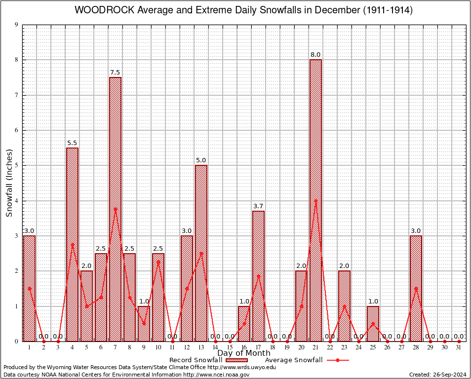 WOODROCK (489713) December Average and Extreme Daily Snowfall AMounts (1911-1914) To index page for WOODROCK