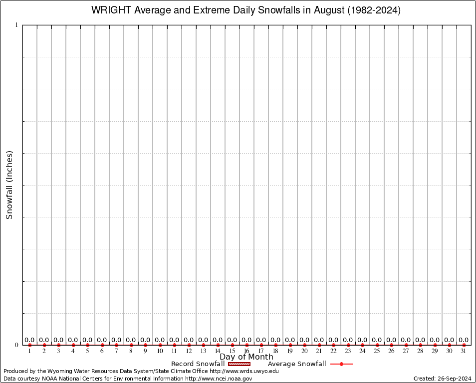 WRIGHT (489800) August Average and Extreme Daily Snowfall AMounts (1982-2024) To index page for WRIGHT