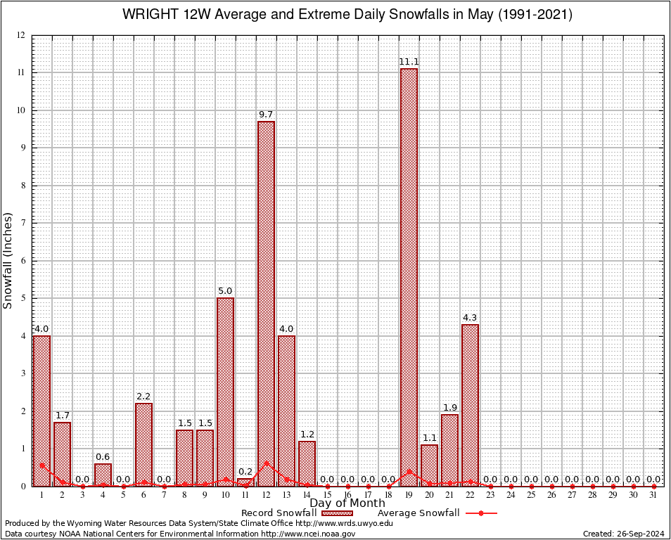 May Average and Extreme Daily Snowfall AMounts (1991-2021)