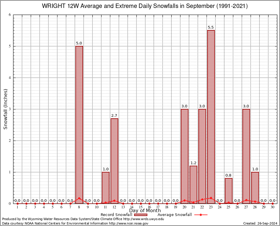 WRIGHT 12W (489805) September Average and Extreme Daily Snowfall AMounts (1991-2021) To index page for WRIGHT 12W