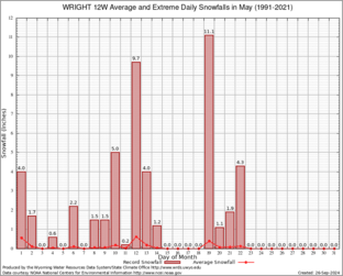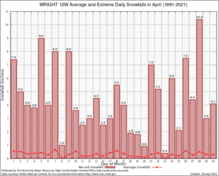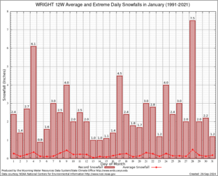 Record Extreme and Average Daily Snowfall (1991-2021)