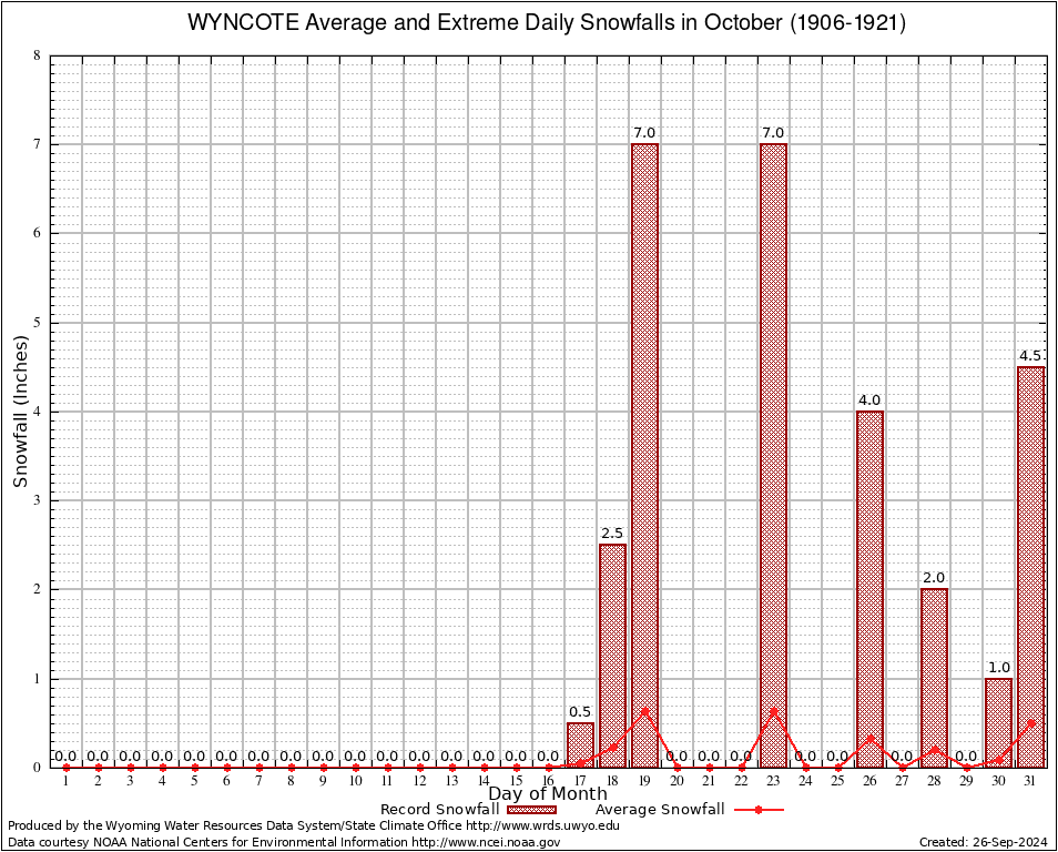 WYNCOTE (489880) October Average and Extreme Daily Snowfall AMounts (1906-1921) To index page for WYNCOTE