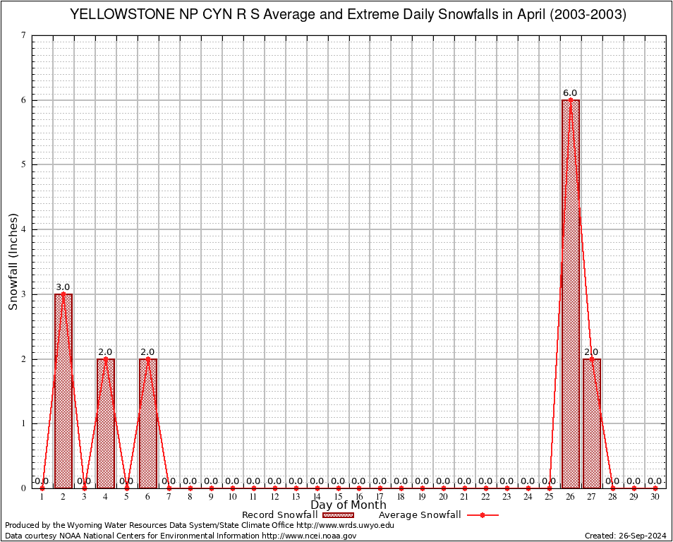 April Average and Extreme Daily Snowfall AMounts (2003-2003)