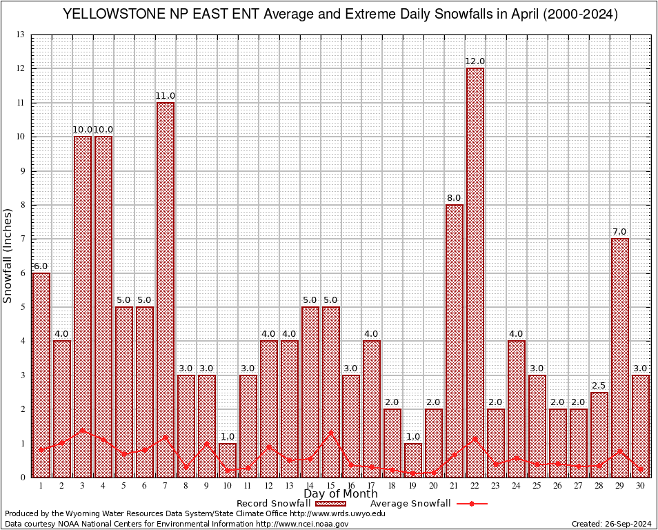 April Average and Extreme Daily Snowfall AMounts (2000-2024)
