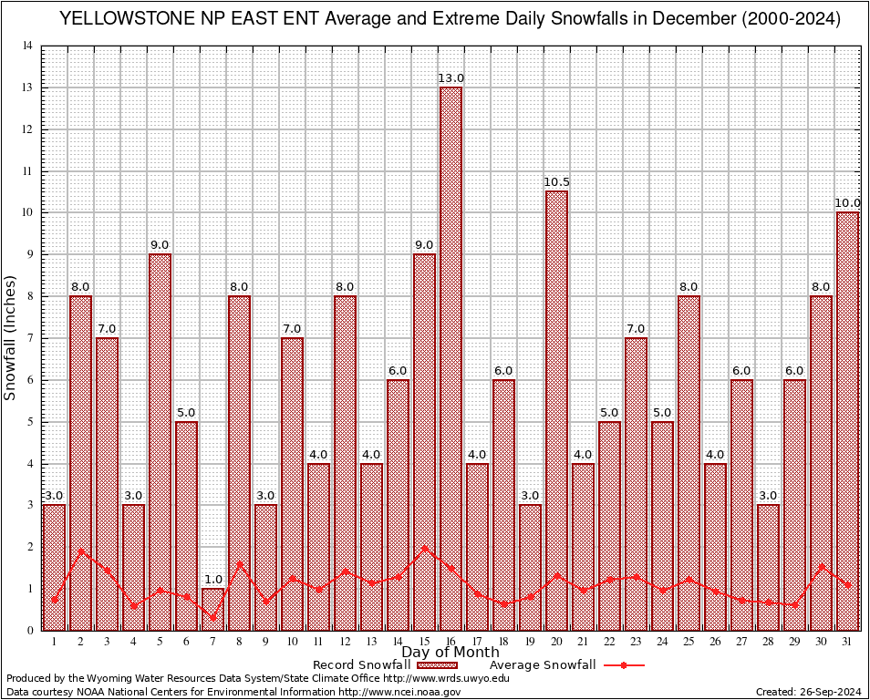 December Average and Extreme Daily Snowfall AMounts (2000-2024)