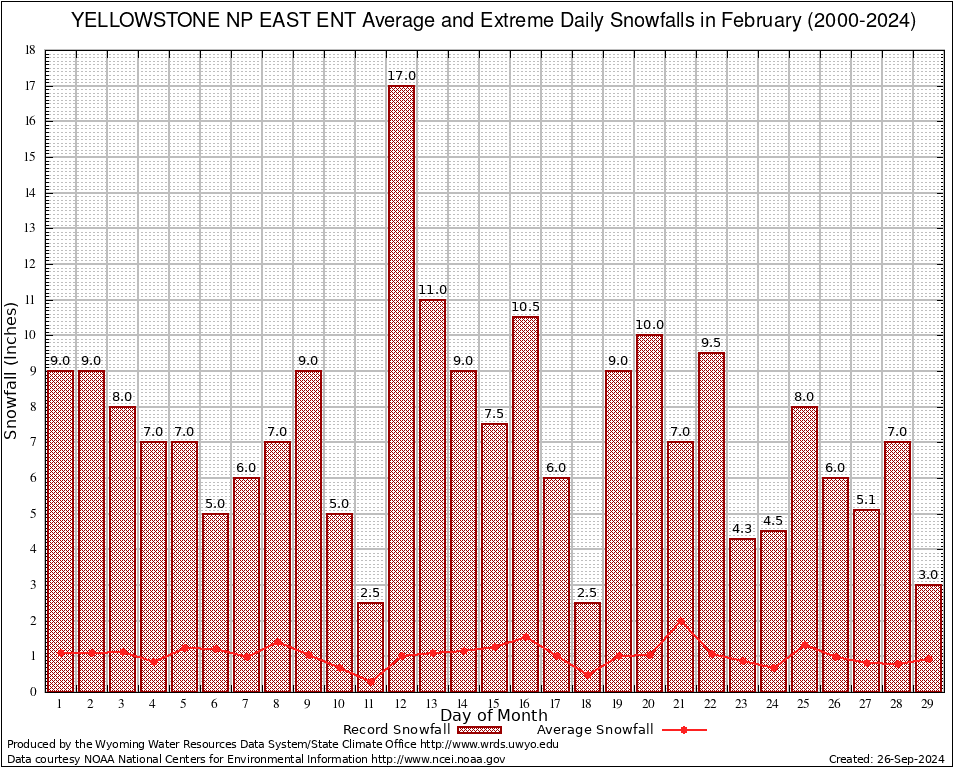 February Average and Extreme Daily Snowfall AMounts (2000-2024)