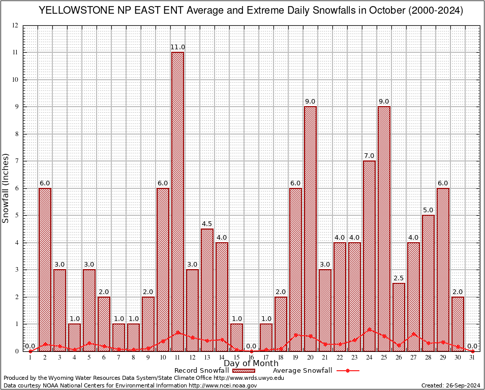 October Average and Extreme Daily Snowfall AMounts (2000-2024)