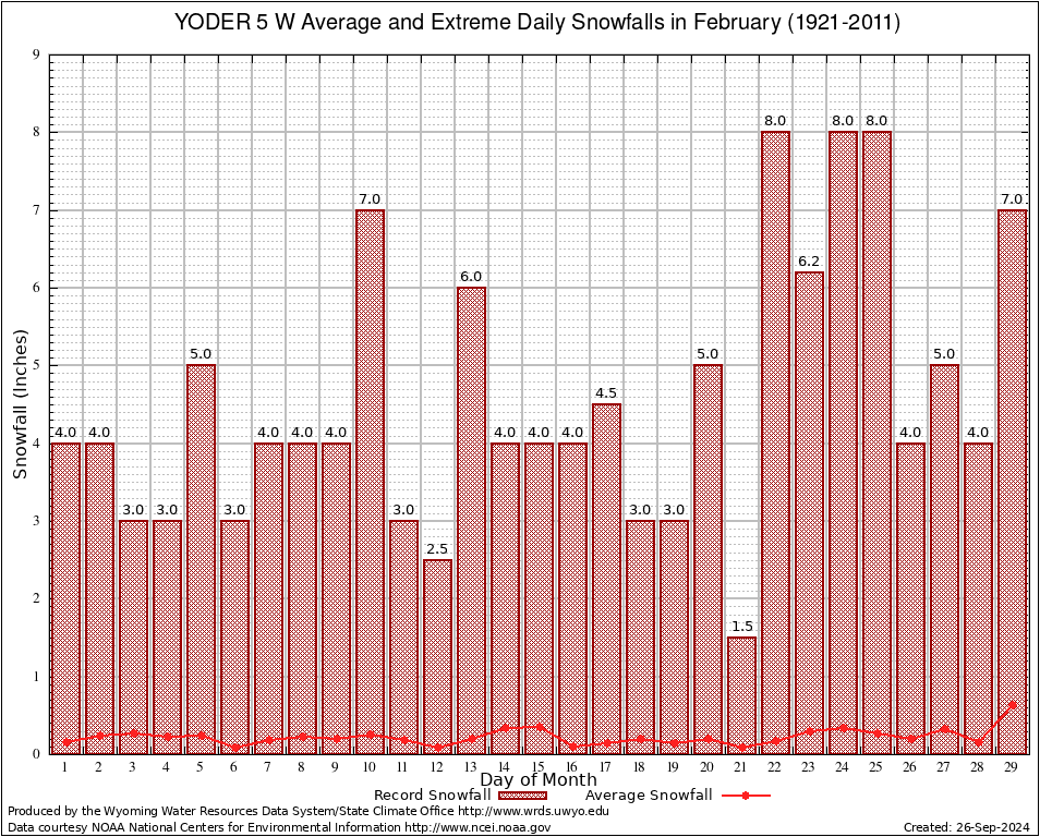 YODER 5 W (489925) February Average and Extreme Daily Snowfall AMounts (1921-2011) To index page for YODER 5 W