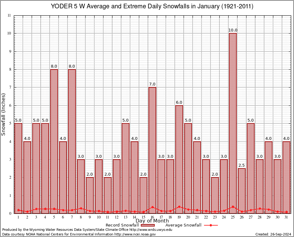 YODER 5 W (489925) January Average and Extreme Daily Snowfall AMounts (1921-2011) To index page for YODER 5 W