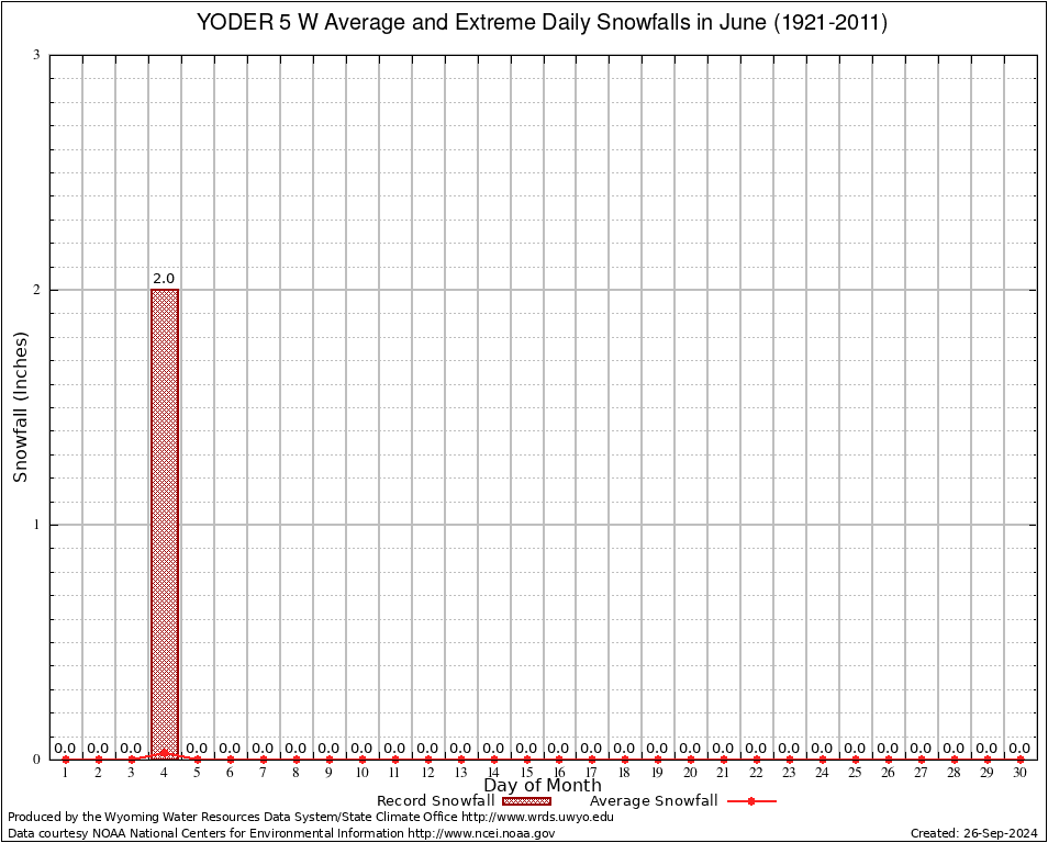June Average and Extreme Daily Snowfall AMounts (1921-2011)