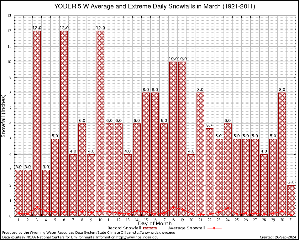 March Average and Extreme Daily Snowfall AMounts (1921-2011)