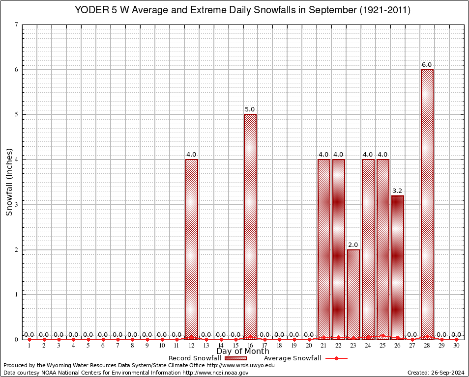 YODER 5 W (489925) September Average and Extreme Daily Snowfall AMounts (1921-2011) To index page for YODER 5 W