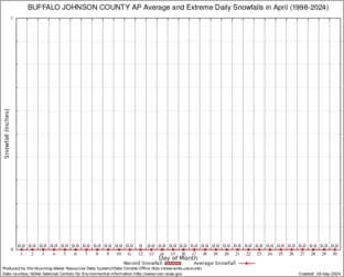 BUFFALO JOHNSON COUNTY AP (94054) Record Extreme and Average Daily Snowfall (1998-2024) See Here for Other Stations
