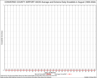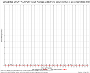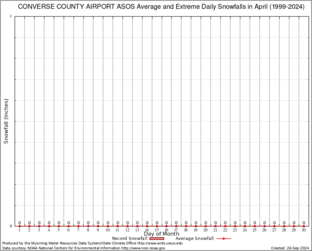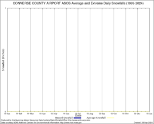 CONVERSE COUNTY AIRPORT ASOS (94057) Record Extreme and Average Daily Snowfall (1999-2024) See Here for Other Stations